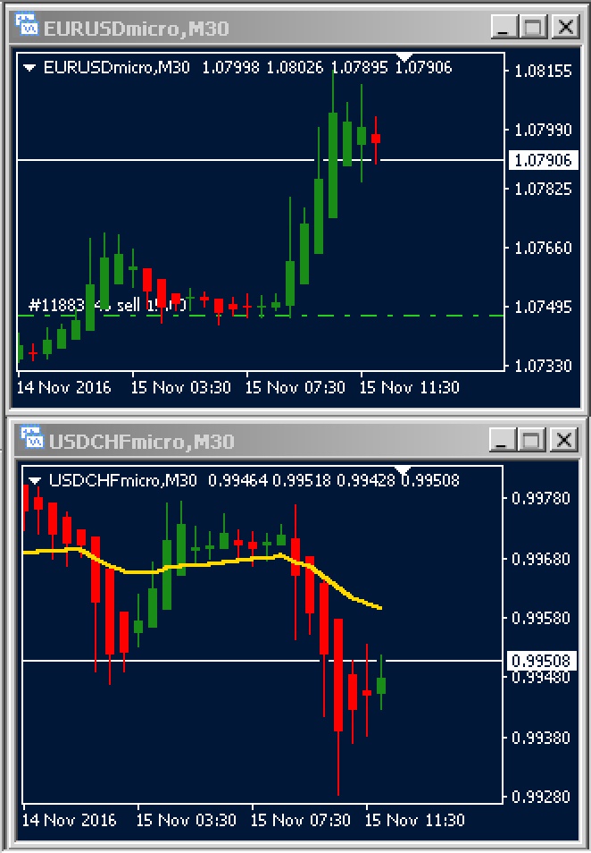 Come potete osservare dallo screen fatto con la MT4, la coppia EUR/USD ha subito durante l’elezioni presidenziali USA un fortissimo scossone a mio modestissimo avviso legato non tanto dal fatto che è stato eletto Trump e non Clinton come presidente ma dall’elevata incertezza durante le elezioni. Ancora una volta sembra che i sondaggi abbiano “fatto fetecchia”. Sembrava che dovesse essere eletta la Clinton e invece alla fine Trump ha sbaragliato la concorrente in modo plateale tanto è vero che in prima mattinata (ora italiana) si sapeva già chi fosse il presidente.