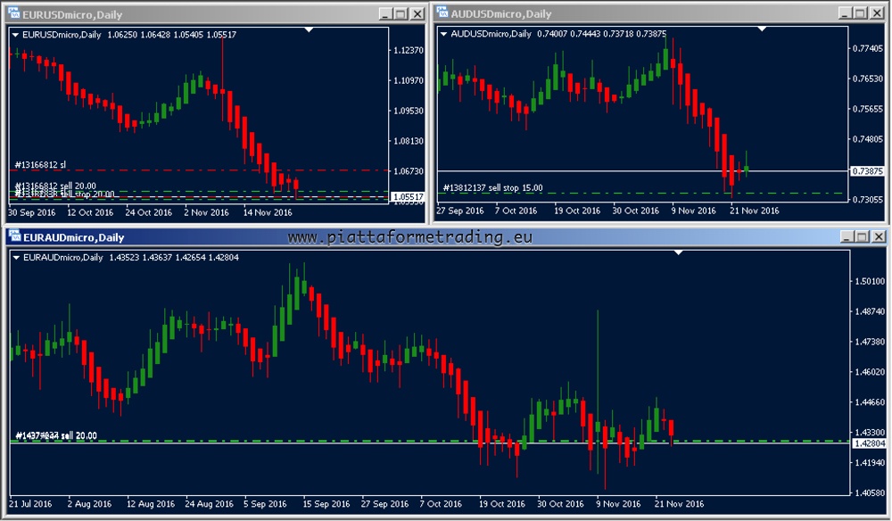 Cari amici trader, chi mi sta seguendo sul nostro canale telegram ha già avuto in tempo reale i nostri aggiornamenti. Riepilogando. Abbiamo rafforzato le nostre posizioni su EURUSD e AUDUSD con SL ravvicinati per una mia analisi dei pivot e abbiamo aspettato le news delle 14:30. Tutto è andato alla perfezione, ma in vista delle prossime dichiarazioni della Yellen (Predidente della Federal Reserve) visto che adesso c’è Trump, potrebbero esserci sorprese e quindi è meglio stare lontani dai mercati se possibile e pertanto abbiamo chiuso tutto con un +246 euro odierno. Ora vediamo se riusciamo a speculare sulle dichiarazioni della Yellen. Di seguito i nostri screen su EURUSD e su AUDUSD https://uploads.disquscdn.com/images/2da76acb28193b04a150031af409240a25b552cb8b768e638d4e65fadc0839e3.jpg https://uploads.disquscdn.com/images/83022639b99f7b24c6a56a6ba6bd5681c5ddfac24b871df5f2e9931c0eeb7ba8.jpg